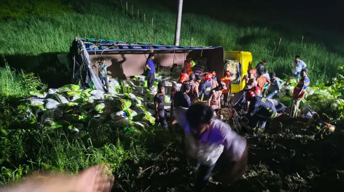 কুমিল্লার দাউদকান্দিতে একটি চালবোঝাই ট্রাক উল্টে নিচে চাপা পড়ে সাতজন নিহত হয়েছেন। এ ঘটনায় আহত হয়েছেন আরও ছয়জন। তাদের উদ্ধার করে বিভিন্ন হাসপাতালে ভর্তি করা
