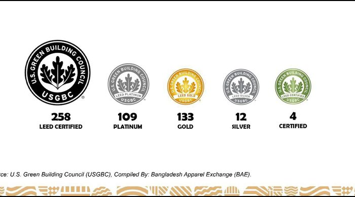 বাংলাদেশের রপ্তানিমুখী তৈরি পোশাক খাত পরিবেশবান্ধব উৎপাদনের দিক থেকে আরেকটি গুরুত্বপূর্ণ অর্জনের পথে পা রেখেছে। সম্প্রতি আরও পাঁচটি পোশাক কারখানা মার্কিন যুক্তরাষ্ট্রের গ্রিন বিল্ডিং কাউন্সিলের ‘লিডারশিপ ইন এনার্জি অ্যান্ড এনভায়রনমেন্টাল